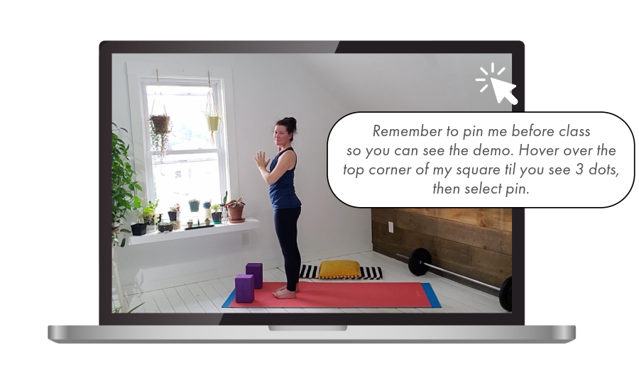 •When joining a Zoom session you can pin my video in order to have a visual to follow. I give verbal cues and demonstrate many of the physical poses on offer.