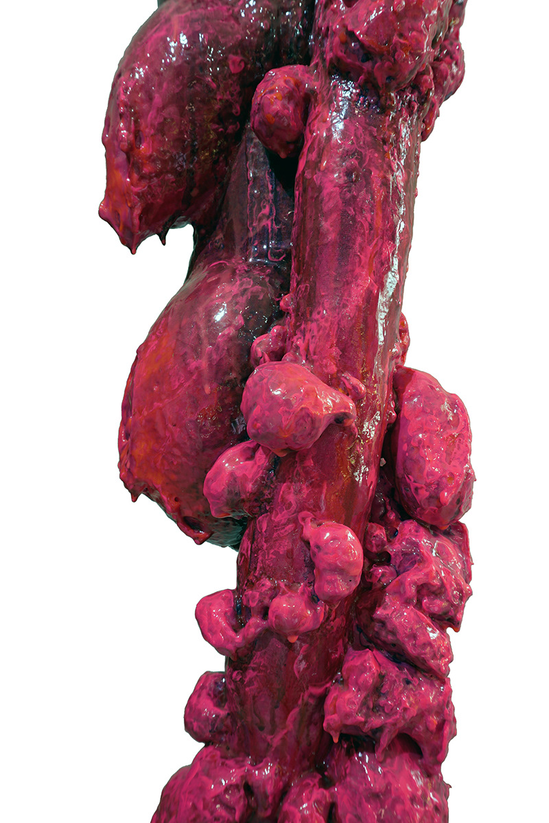 While making these sculptures, the color pink came to symbolize, for me, life and ways of enduring. That was reinforced when I read that the oldest biological color ever found was in the form of bright pink pigments—molecular fossils of chlorophyll produced by microscopic organisms in an ocean that once existed where the Sahara desert is now. The samples are 1.1 billion years old.